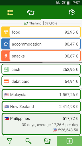 • write down your expenses in multiple currencies by date, category, payment way and country. It converts all your expenses to your home currency